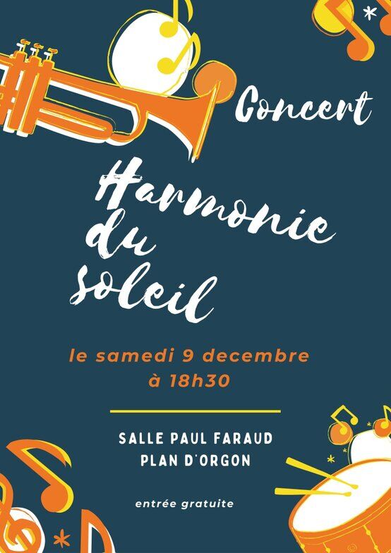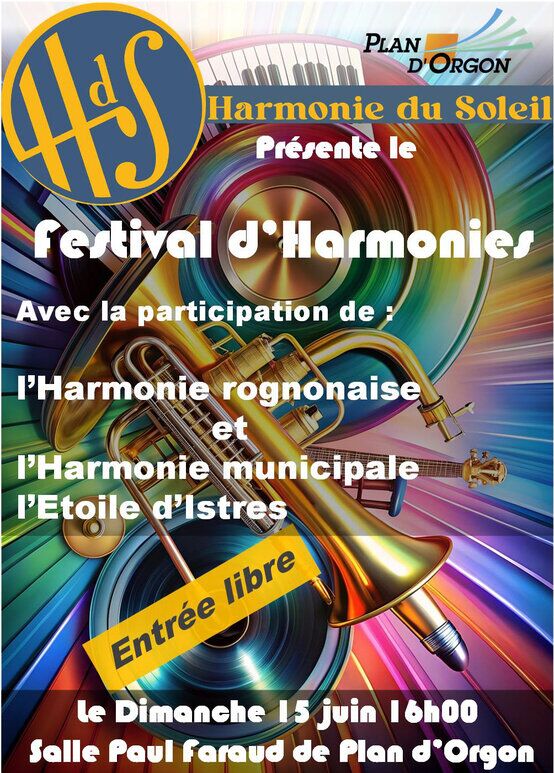 Le dimanche 15 juin 2025 à 16h00, salle Paul Faraud à Plan d'Orgon, l' Harmonie du Soleil organise un festival d'Harmonies avec la participation de: