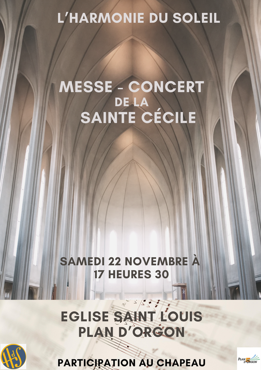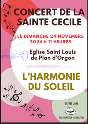 Le dimanche 24 novembre 2024 à 11 heures pour la Sainte Cécile en l'Eglise de Plan d'Orgon, le concert sera