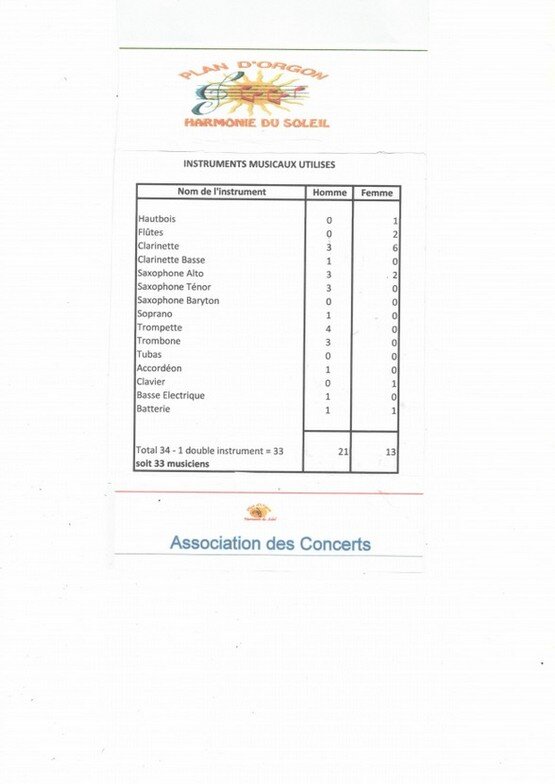 Remarques: Parmi les musiciens de l'Harmonie du Soleil, l'Association des